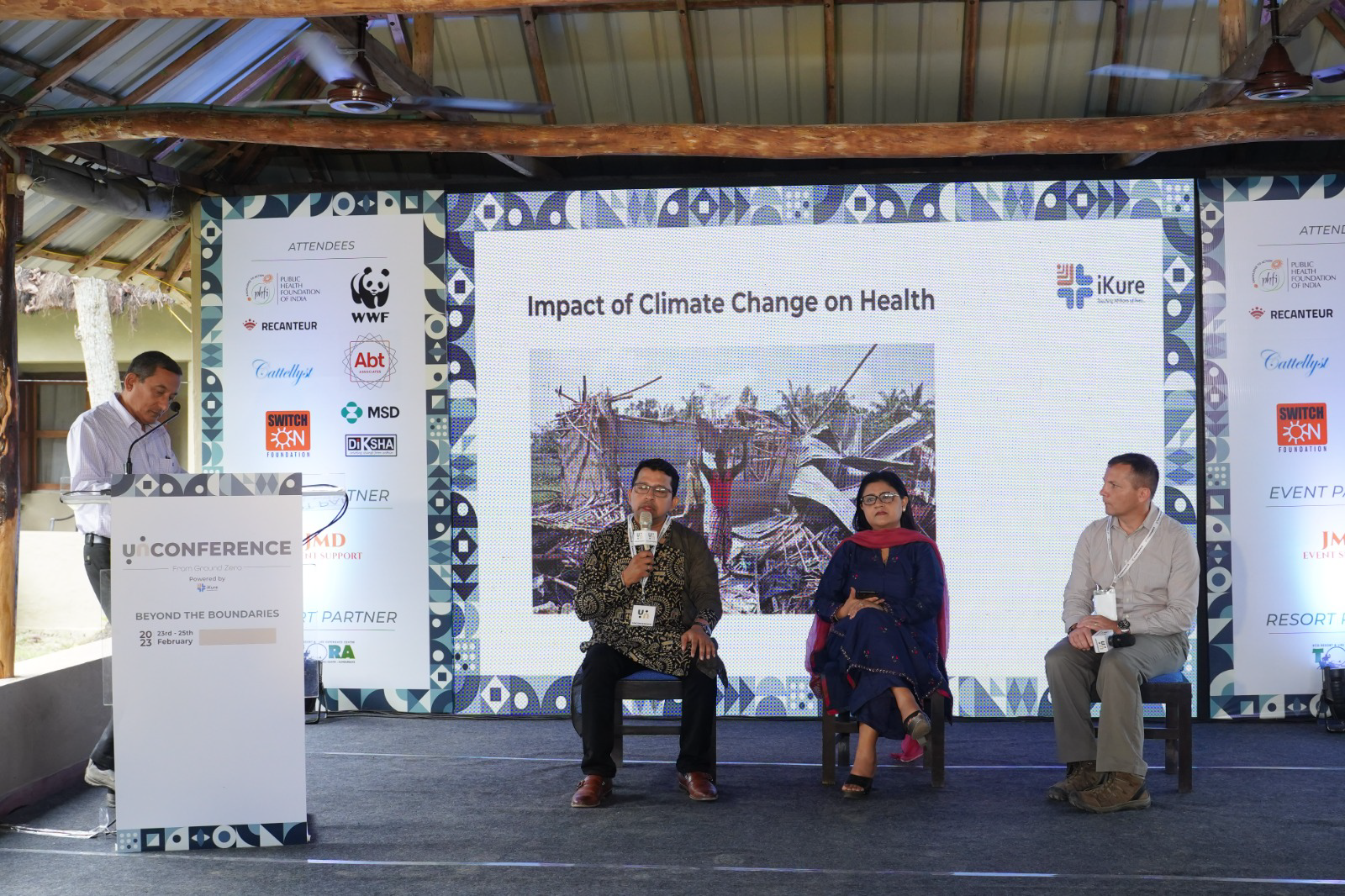 The Unconference for Solutions was held at Tora Eco Resort, Bali II Island, Sundarbans from 23rd-25th February 2023. The panel for Track II: Impact of Climate Change on Health included Mr. Soumitra Ghosh (Chief of Party ABT Associates) was the moderator of the panel, Mr. Sujay Santra (Founder & CEO; iKure Techsoft Pvt.Ltd), Mr. Todd Huber (Founder & Chairperson; Cattellyst Foundation), Ms. Pompy Sridhar